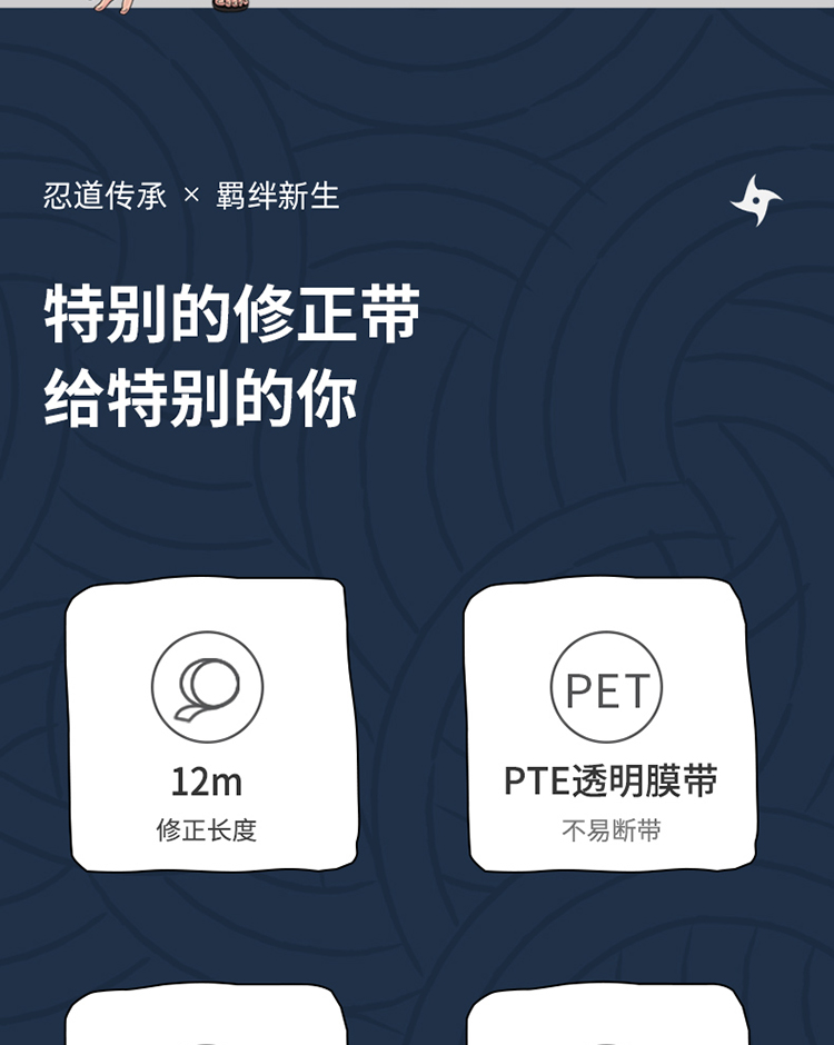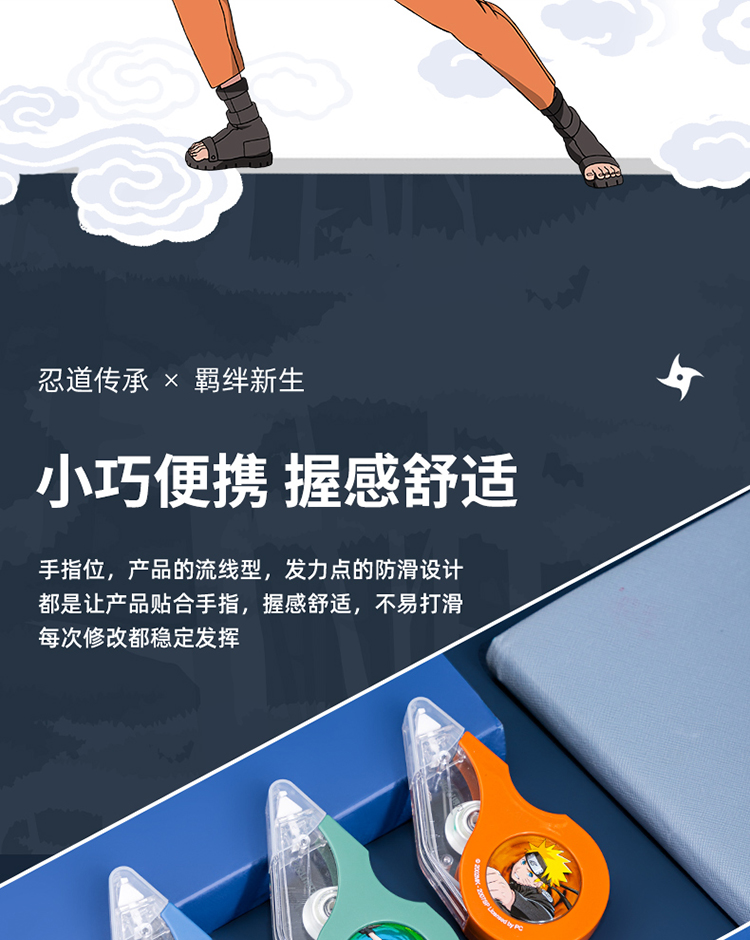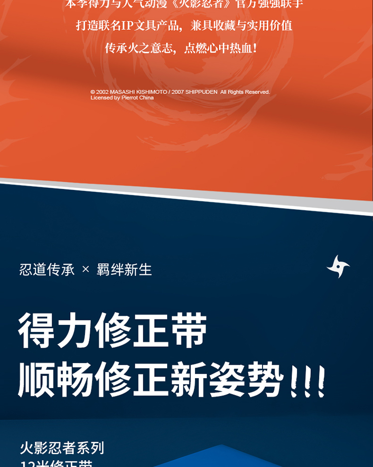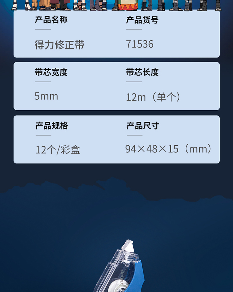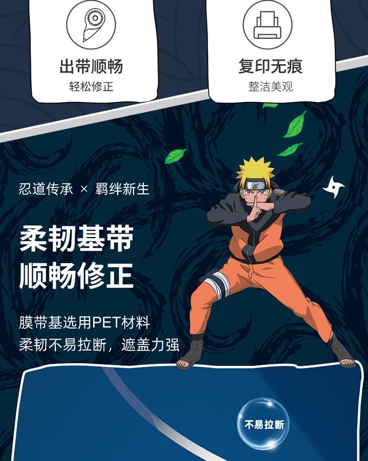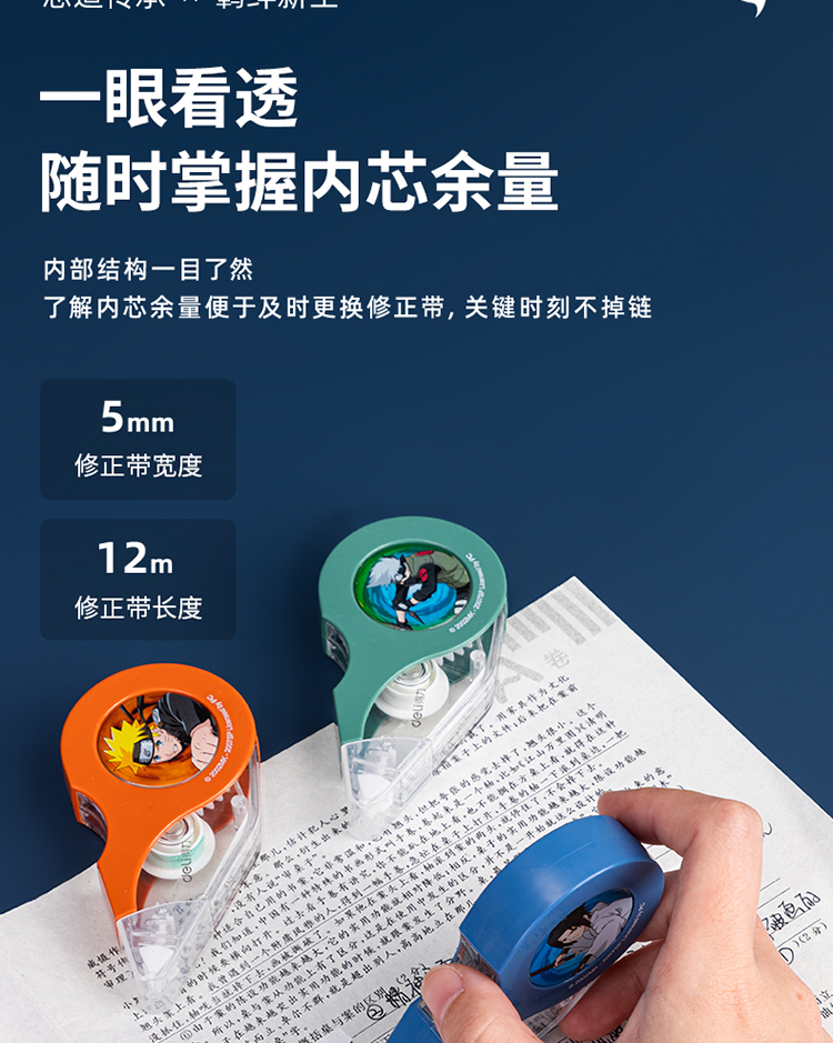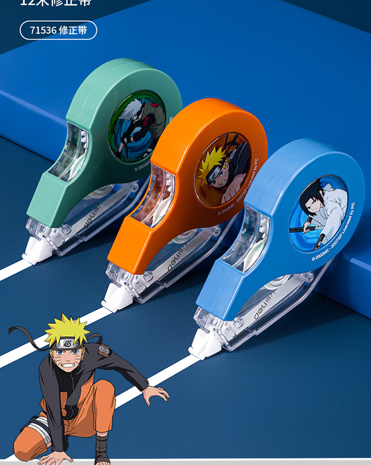得力(deli)火影忍者修正帶12m 學生涂改帶 順滑不斷帶復印無痕改正帶 71536 自營