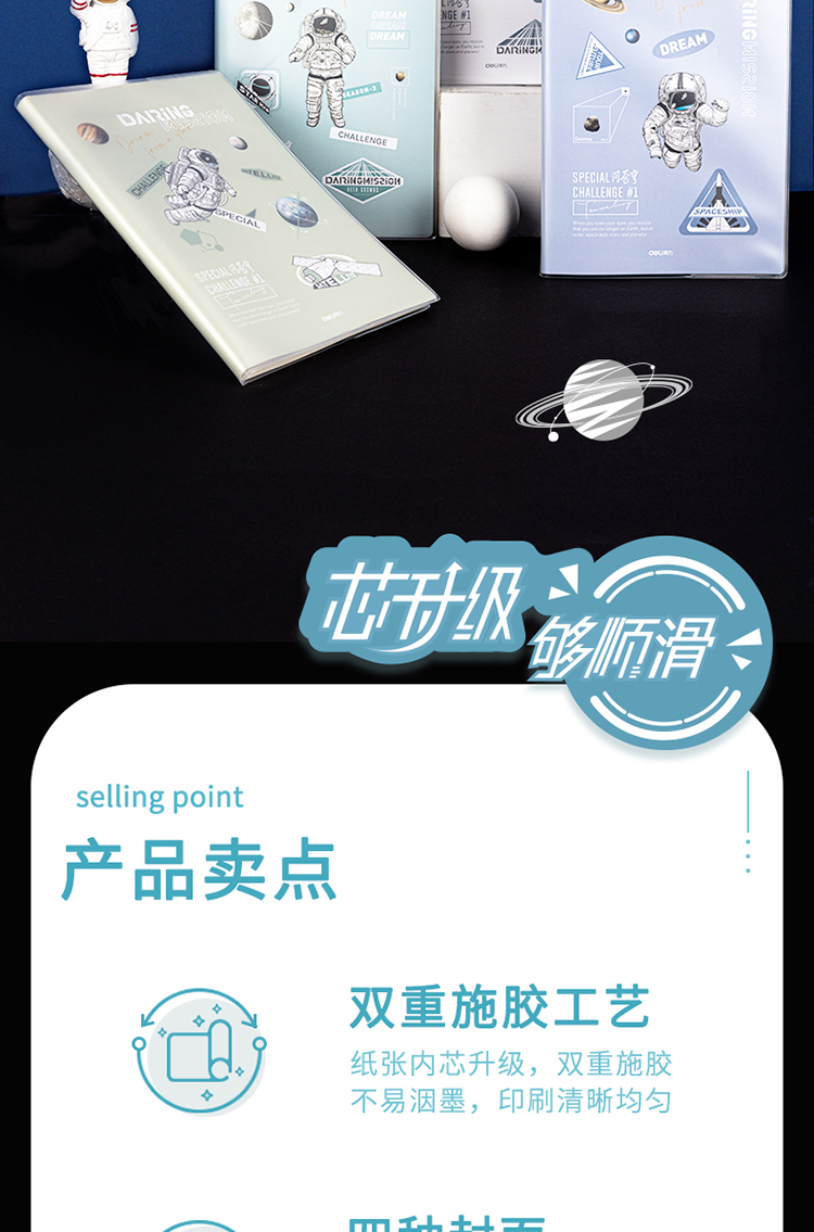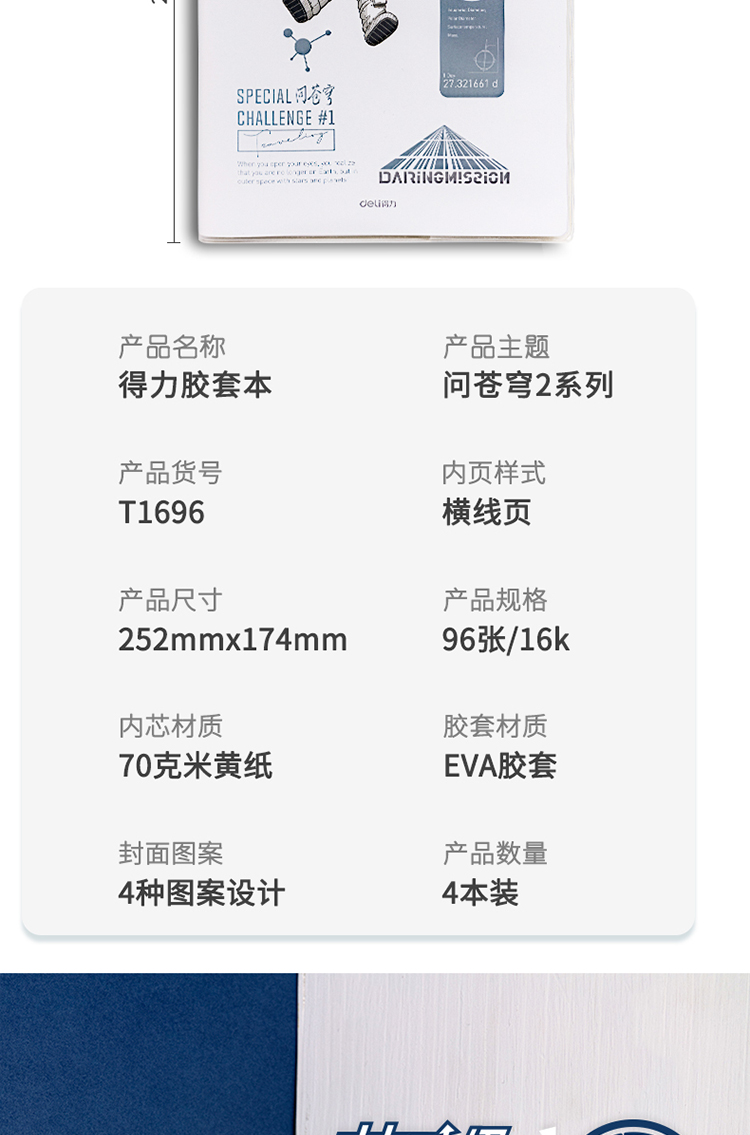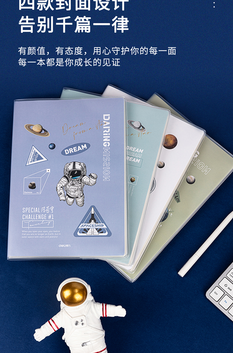 得力(deli)問蒼穹系列筆記本子膠套本 學(xué)生軟抄本作業(yè)本記事本日記本文具 16K96張 4本裝 T1696 自營